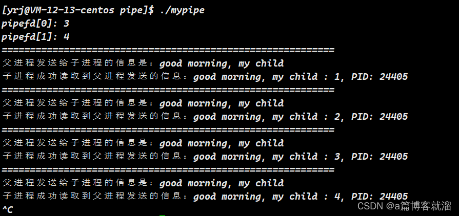 场景二:子进程长时间不读取数据,父进程不断写入,直到管道写满