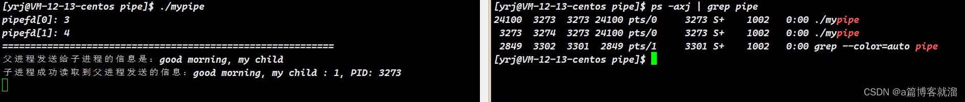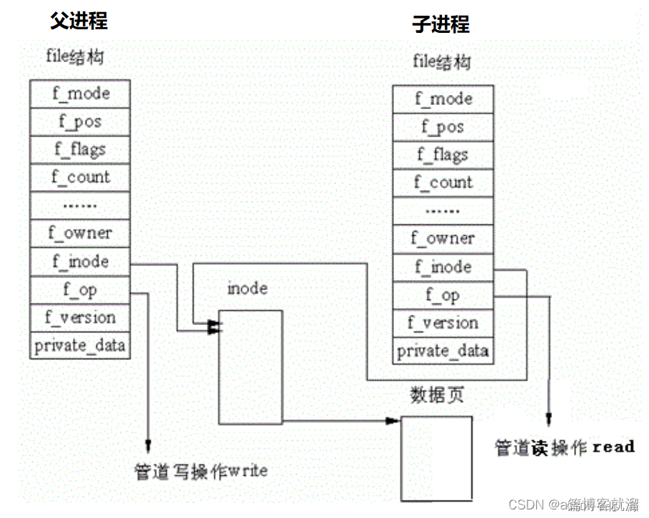 这个时候我们的父子进程就可以一个向管道文件写入数据一个从管道中读取数据,这样两个进程就可以完成通信了。