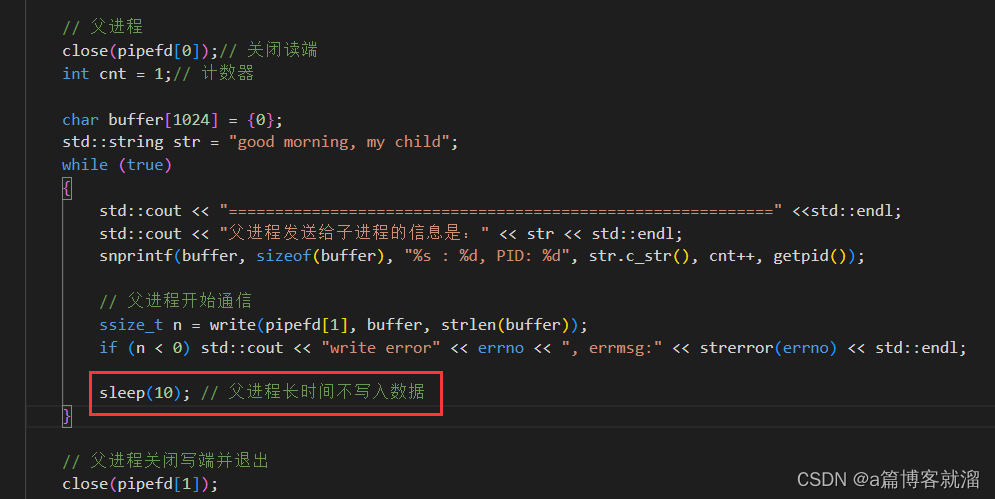 场景一:父进程长时间不写入,此时管道为空,子进程尝试读取编辑