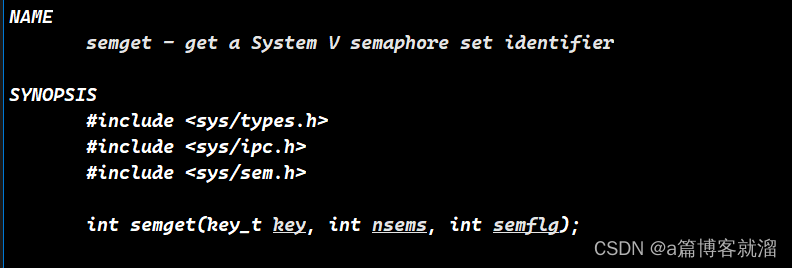 信号量的申请比较特殊,一次可以申请多个信息量,官方称此为 信号量集,所使用函数为 semget