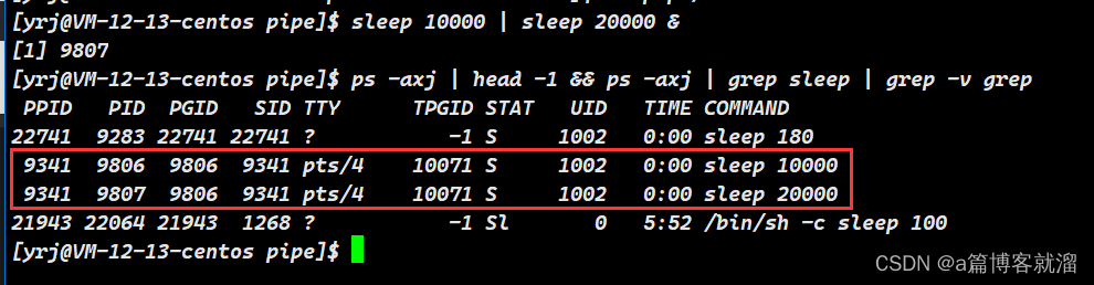 即可使用管道;创建两个睡眠时间较长的 后台进程,注:&