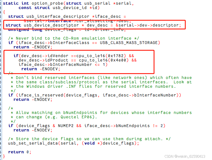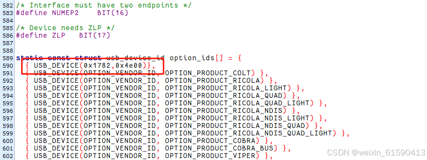 在瑞芯微官方SDK源码不做任何配置或修改再编译的话,开发板是不能正确识别4G模块的,为此做出相应修改。不同的4G模块有不同的VID和PID,合宙Cat1 Air724UG的VID和PID为(0x1782,0x4e00)