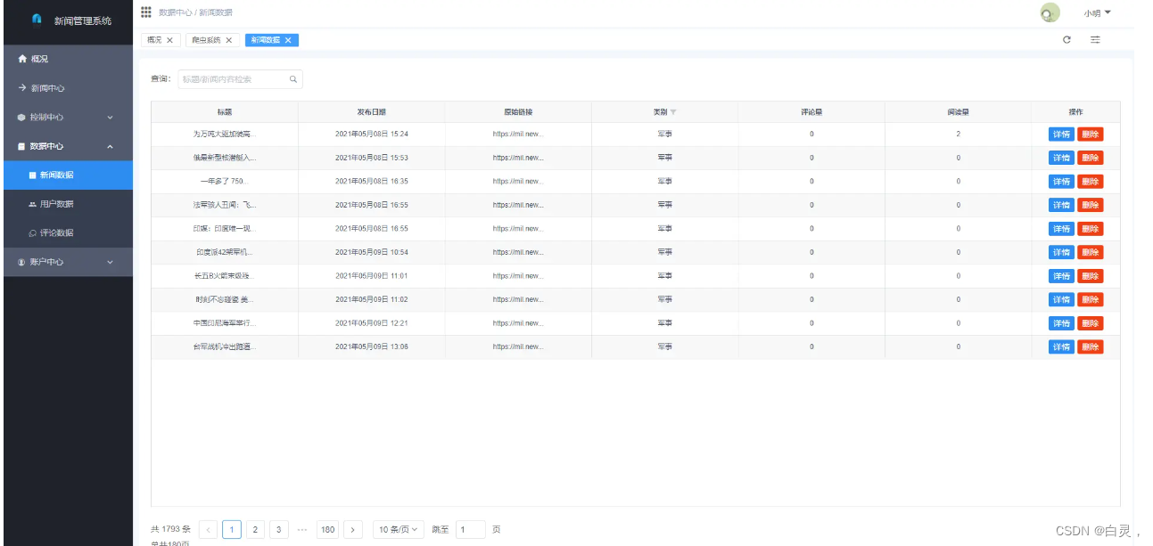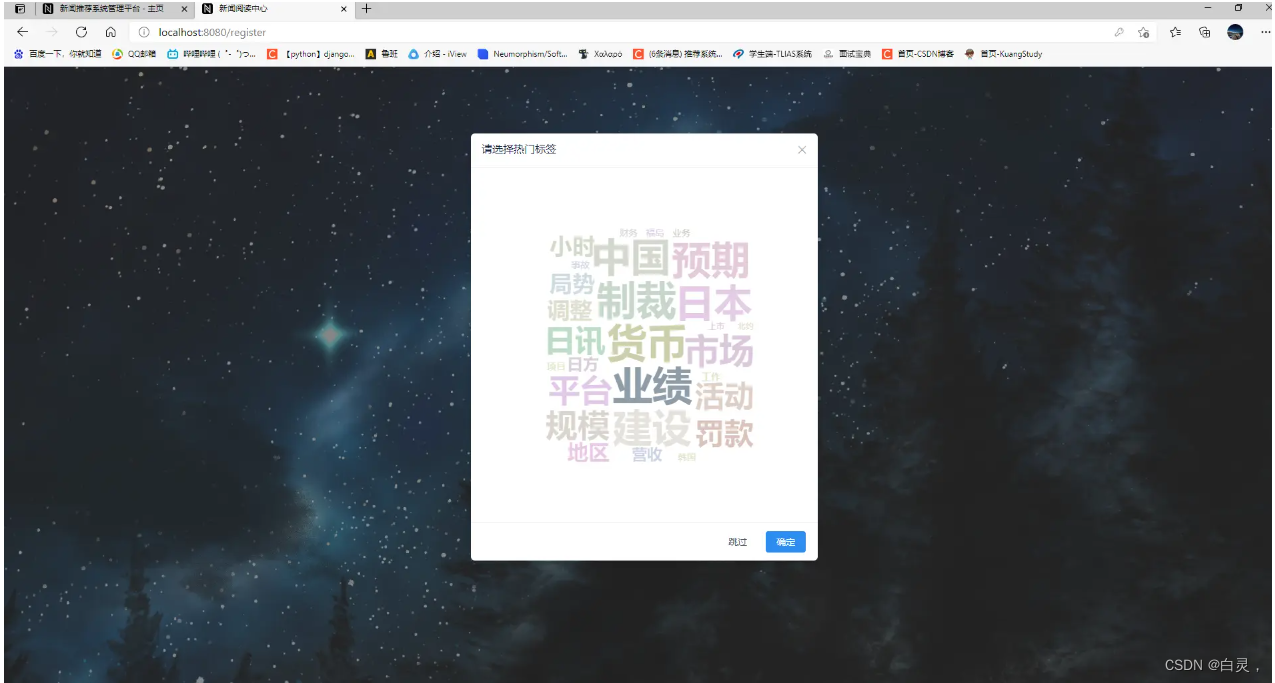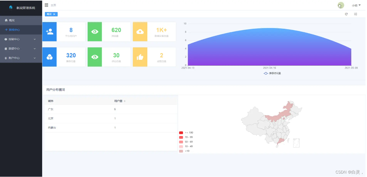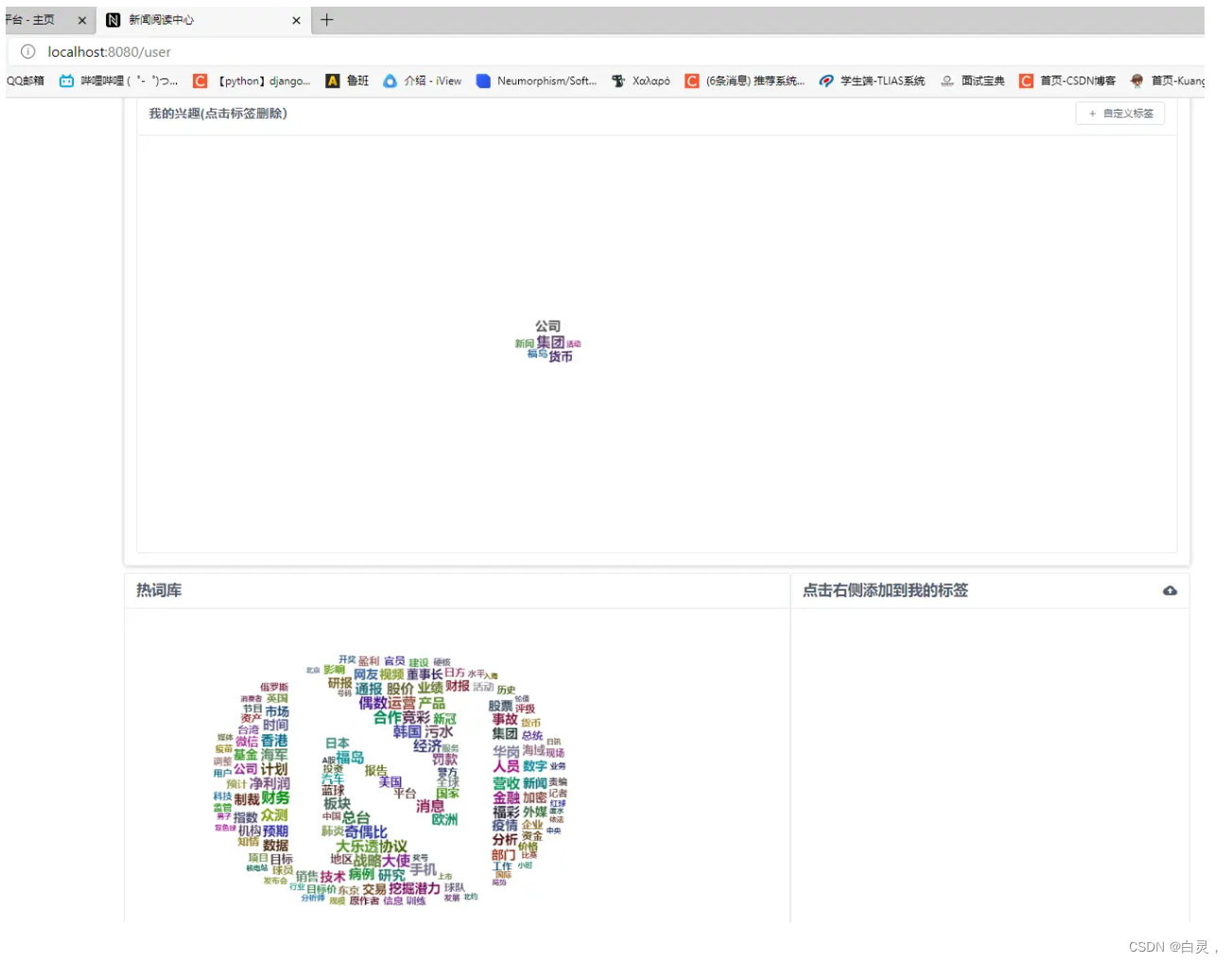 - 其他:通过词云显示所有兴趣标签整洁大方,使用大量的数据可视化手段,使得管理员可以更直观地观察到数据的变化。