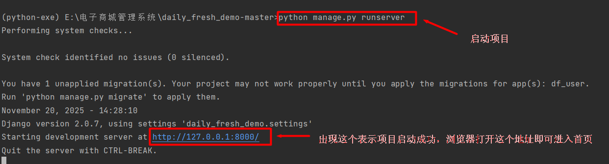浏览器打开: http://127.0.0.1:8000即可进入普通用户入口