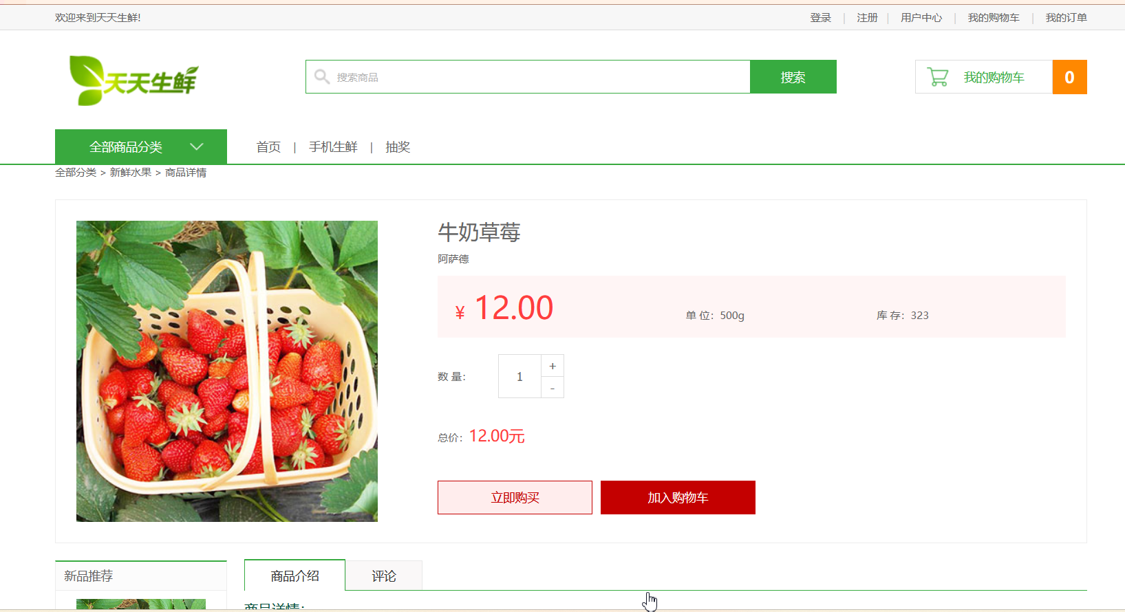 - 商品浏览:商品的图片,售价,种类,简介以及库存等信息。