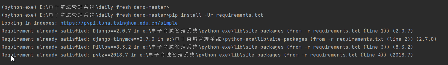 下载文件进入项目目录(daily_fresh_demo-master)之后,在终端使用pip安装依赖包
