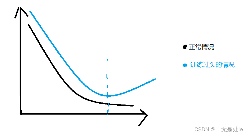 在工程项目当中,数据中往往会存在一定数量的脏数据(异常,错误数据或者缺失数据等),这些脏数据或许一开始不会被学到,但是在训练的后期,当模型训练的差不多的时候如果不停止训练的话或许就会开始学习脏数据,导致损失变大,如下图: