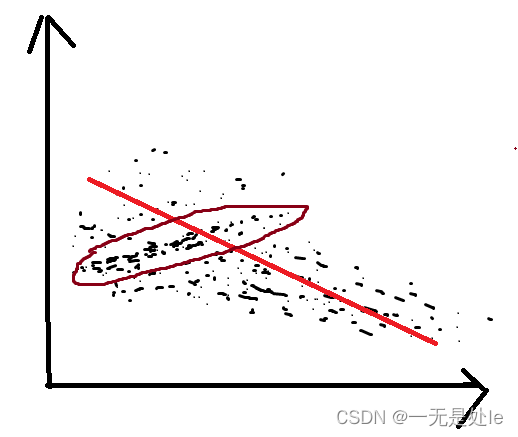 假如这个图就是我们的数据点,我们需要对这些点进行拟合,如果我们训练时遇到棕色圈住的点,那么计算机就会不停的去拟合棕色圈内的那些容易拟合且密集的点,而忽略掉其他不容易拟合的点或者说距离比较远的点,因此会得到一条不理想的线,最终只能是局部损失函数很低,但是拟合的效果却不理想,总体损失函数还是偏高。