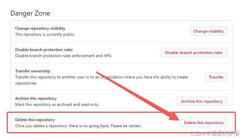 4,划到最下方,进入危险操作区域,点击Delete this repository并按照提示操作