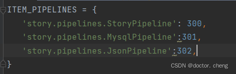 (第一个本来就是有的,后面两个需要在pipelines里面创建新的类,完成保存)