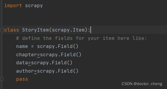 上面导入item那个虽然标红,但不会影响最终爬虫文件,可以置之不理。