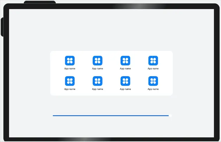 父容器尺寸变化过程中,图标及文字的尺寸不变,图标间的间距及图标离左右边缘的距离同时均等改变。