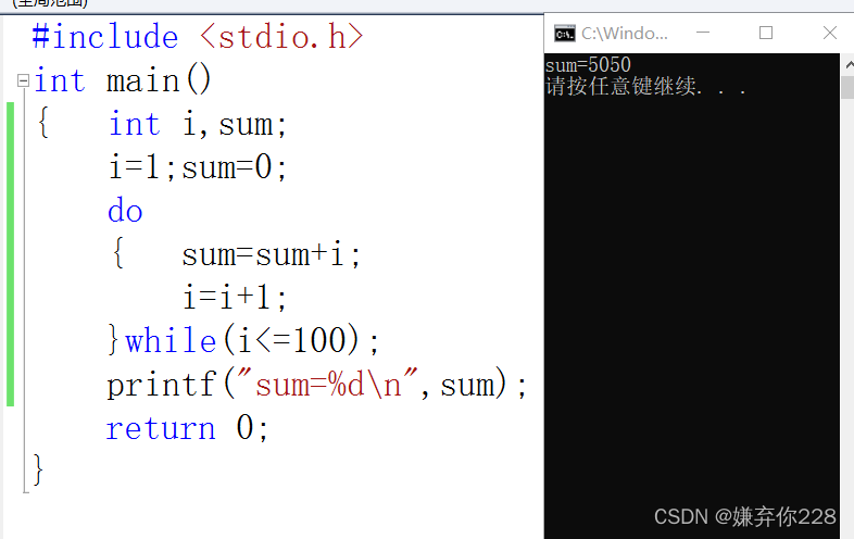 注意:do-while语句的特点是先循环体,后判断循环条件。因此,do-while循环至少要执行一次循环体。