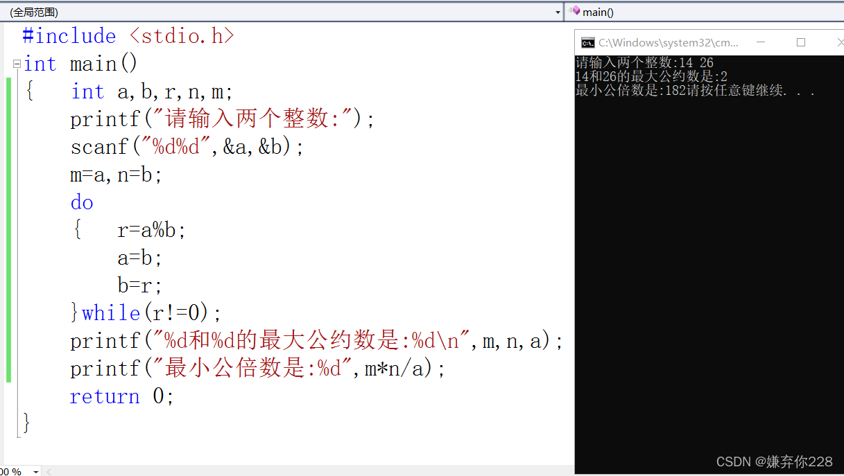 【例5.17】求两个自然数的最大公约数和最小公倍数