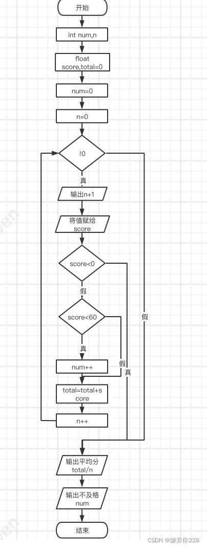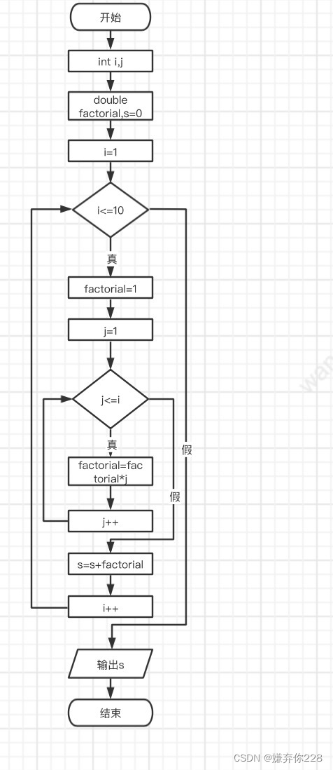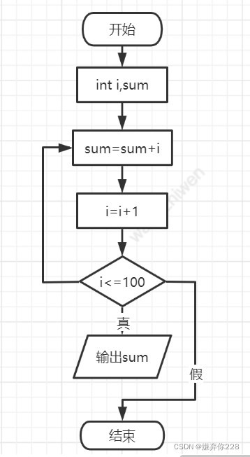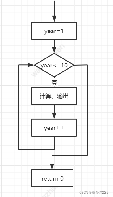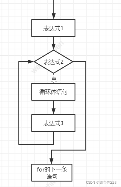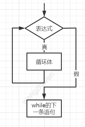 2.计算表达式的值,若表达式的值为‘真’,返回第一步;若表达式的值为‘假’,则执行第3步;