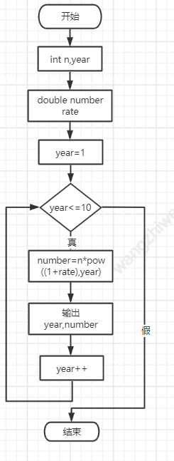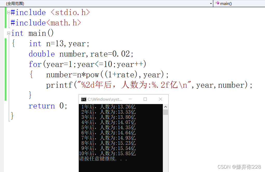 printf("%2d年后,人数:%.2f亿\n,year,number");