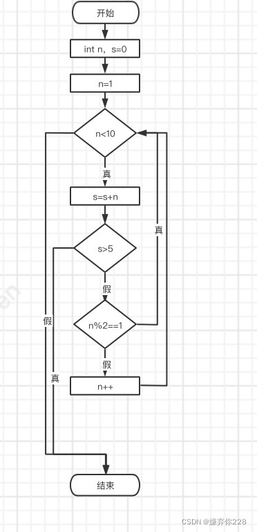 2.判断表达式2,若其值为真(非0),则执行循环体语句,然后执行第3步;若值为假(0),结束循环,转到第5步执行。