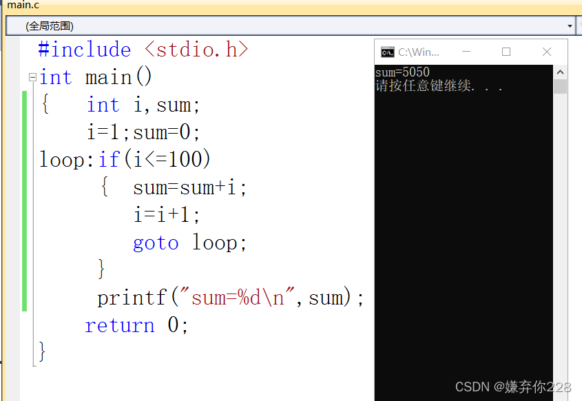 注意:语句标号必须与goto语句处于同一个函数中。通常goto语句与if语句连用实现循环控制