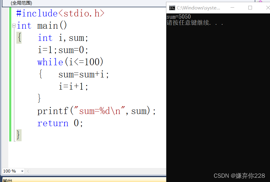 注意:while语句的特点是先判断循环条件,后执行循环体。