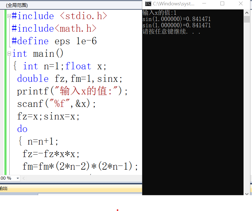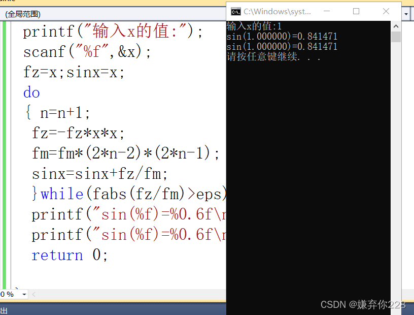 【例5.30】求sin(x)=x-x^3/3!+x^5/5!-x^7/7!+...的近视值,要求精确到10负6次方