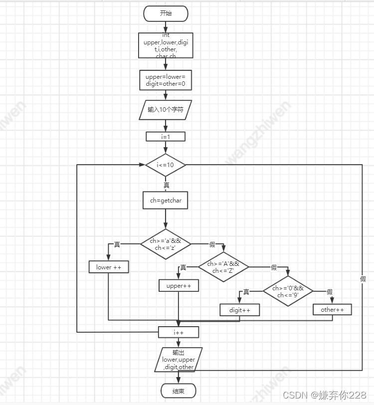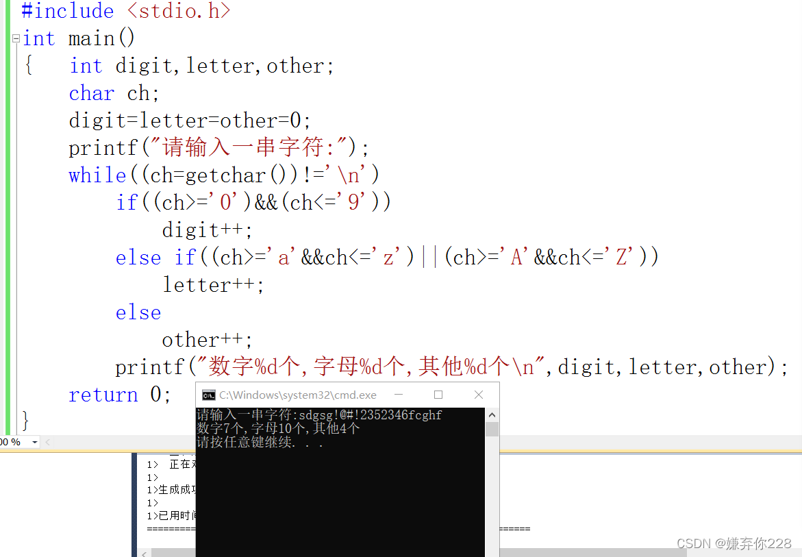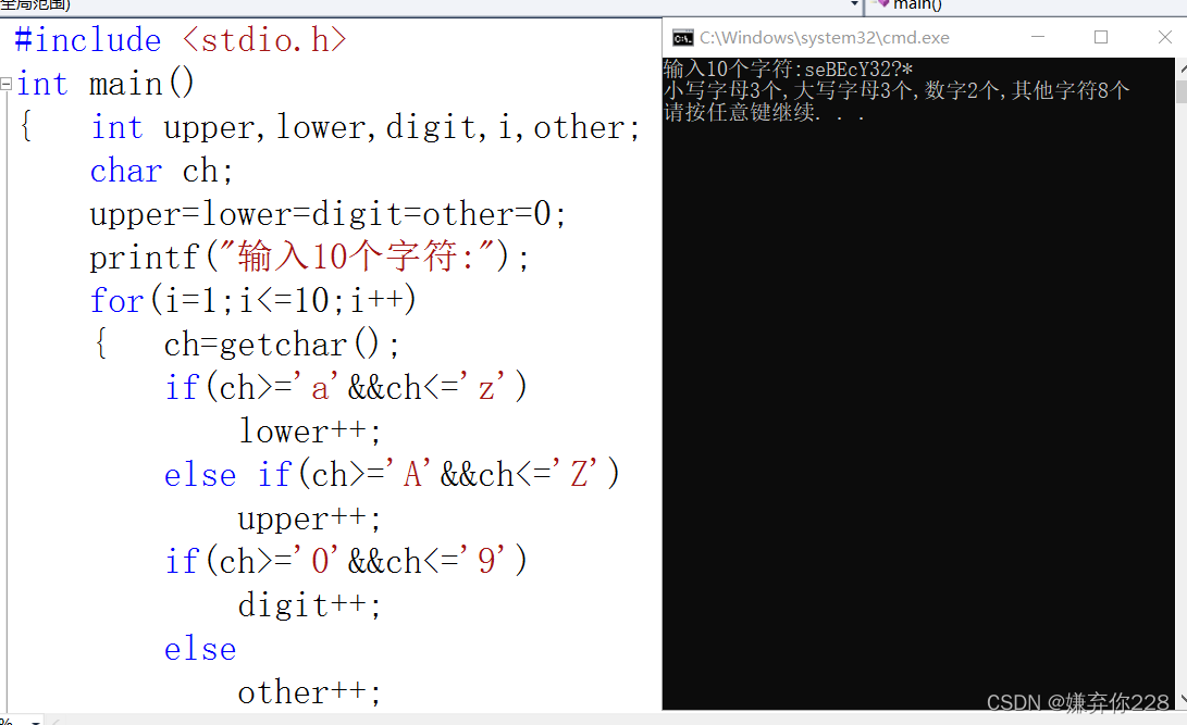 printf("小写字母%d个,大写字母%d,数字%d个,其他字符%d个\n",lower,upper,digit,other);