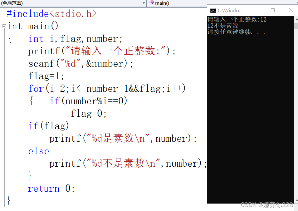 【5.12】由键盘输入一个正整数,判断其是否为素数