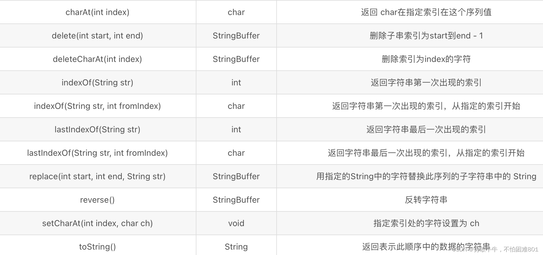 stringbuffer和string builder均可以用来模拟栈,但是stringbuffer是线程安全的,其常用的方法