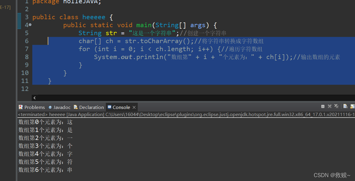 4.提取字符数组中的一部分创建字符串对象