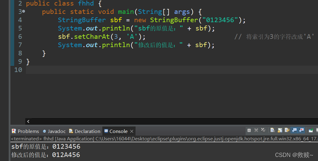 sbf.setCharAt(3, 'A'); // 将索引为3的字符改成'A'