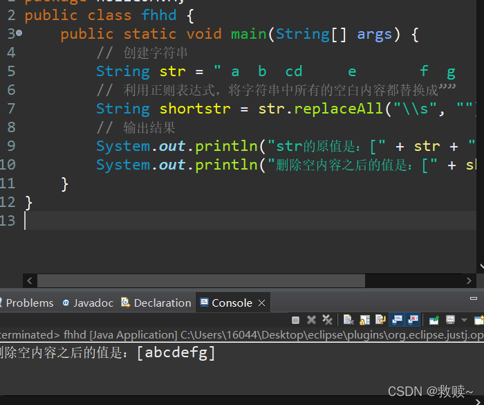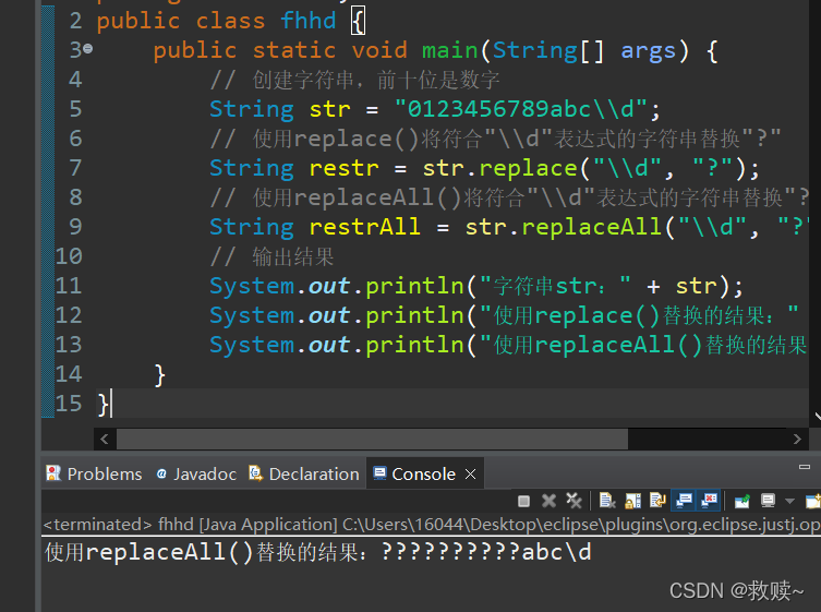 System.out.println("替换后的字符串为:" + tmp);