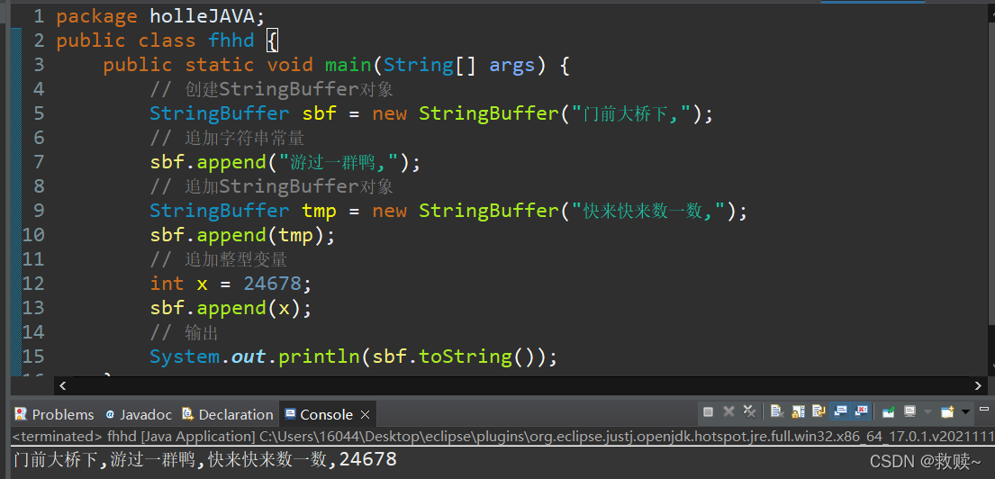 StringBuffer sbf = new StringBuffer("天行健,君子以自强不息");
