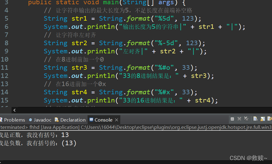 System.out.println("a="+a);