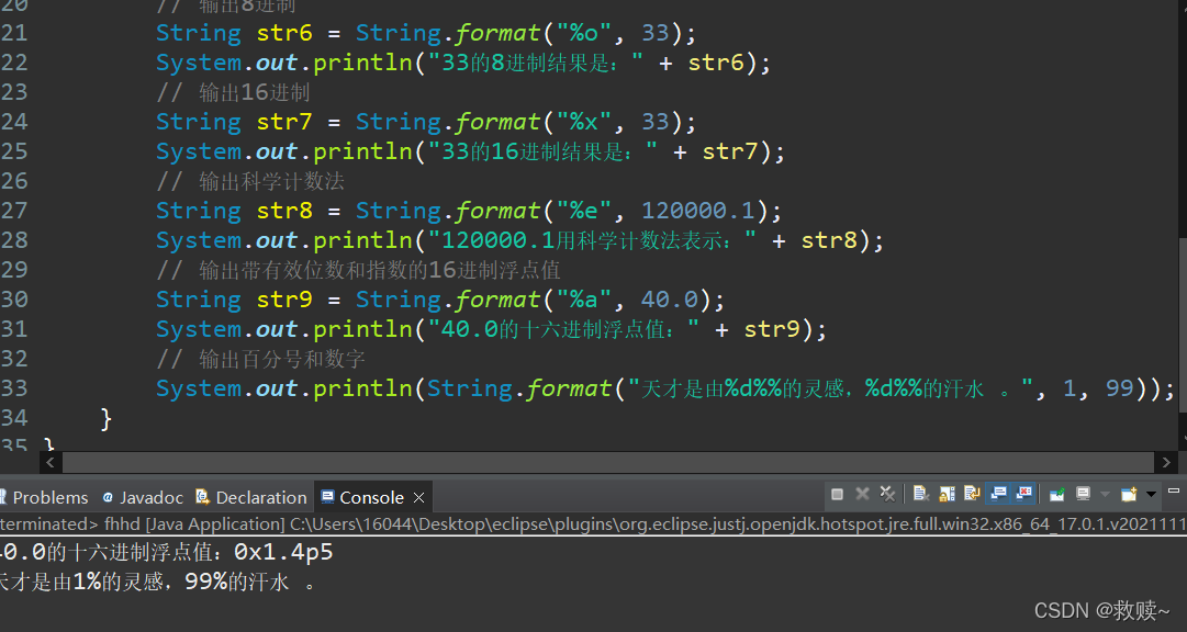 System.out.println("d="+d);