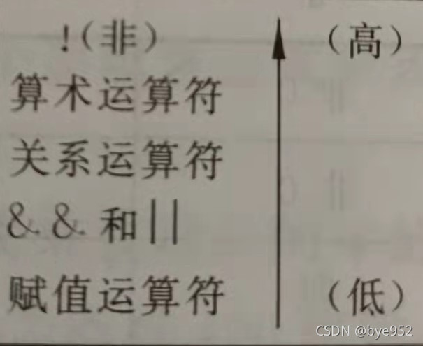 (2)逻辑运算符中的“&&”和“||”低于关系运算符,“!”高于关系运算符,如下图