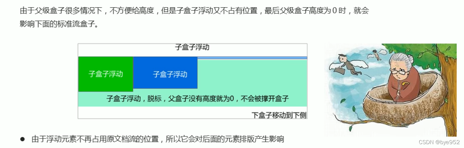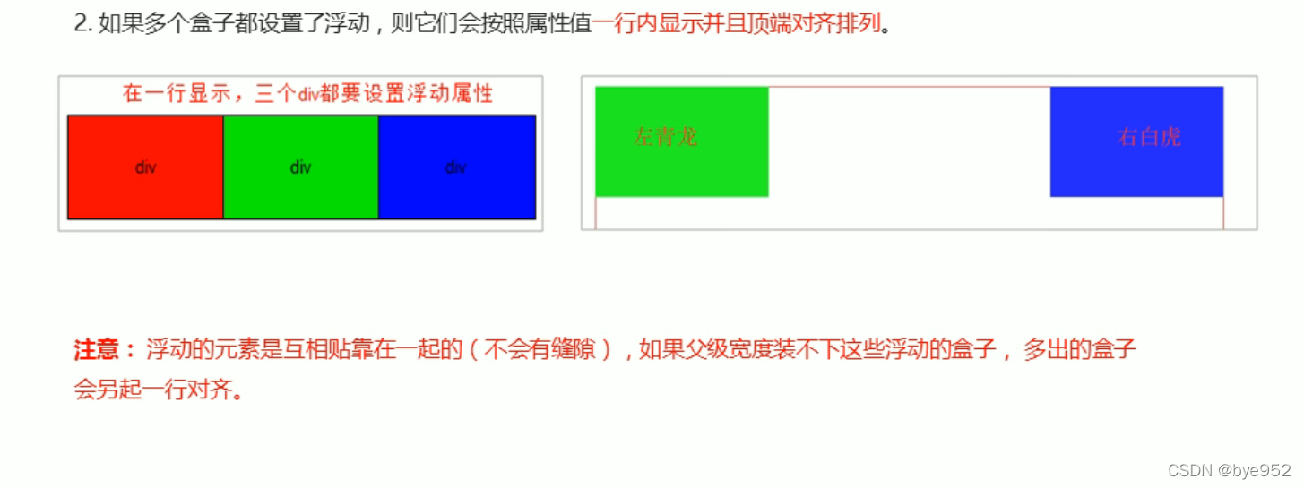 - 浮动的元素会一行内显示并且元素顶部对齐