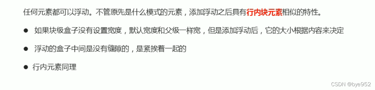 加了浮动之后的元素,会具有很多特性,需要我们掌握的