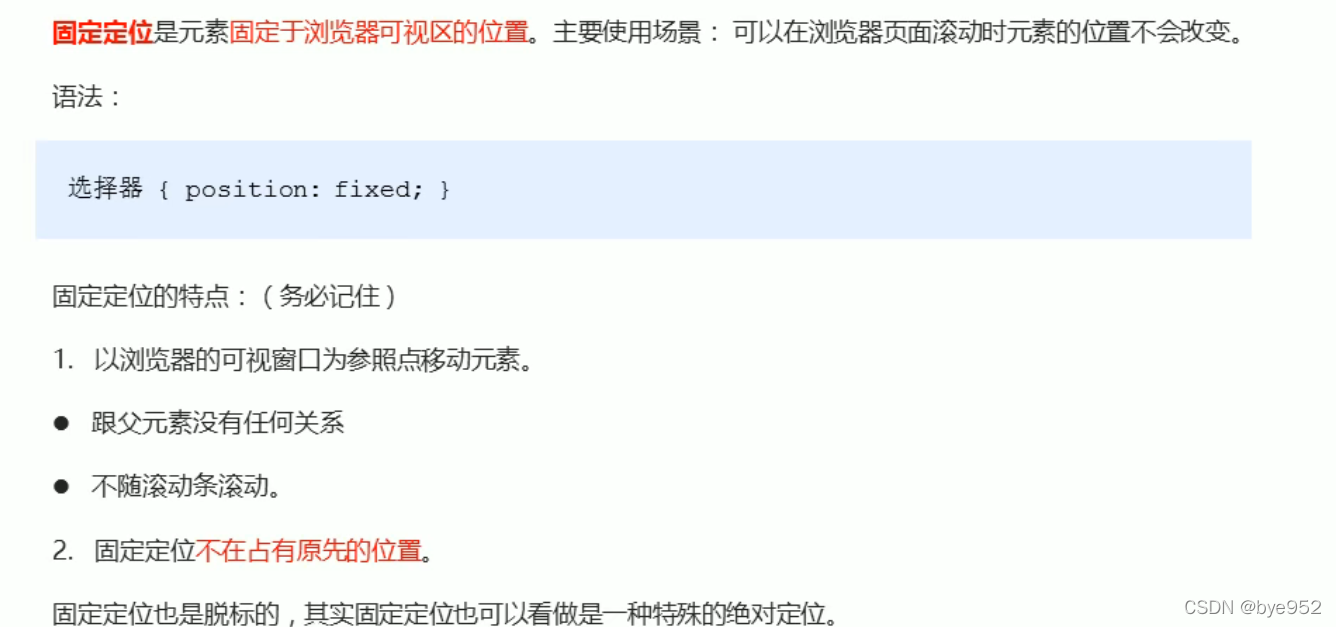 2.当我们滚动窗口时,盒子是固定屏幕某个位置的