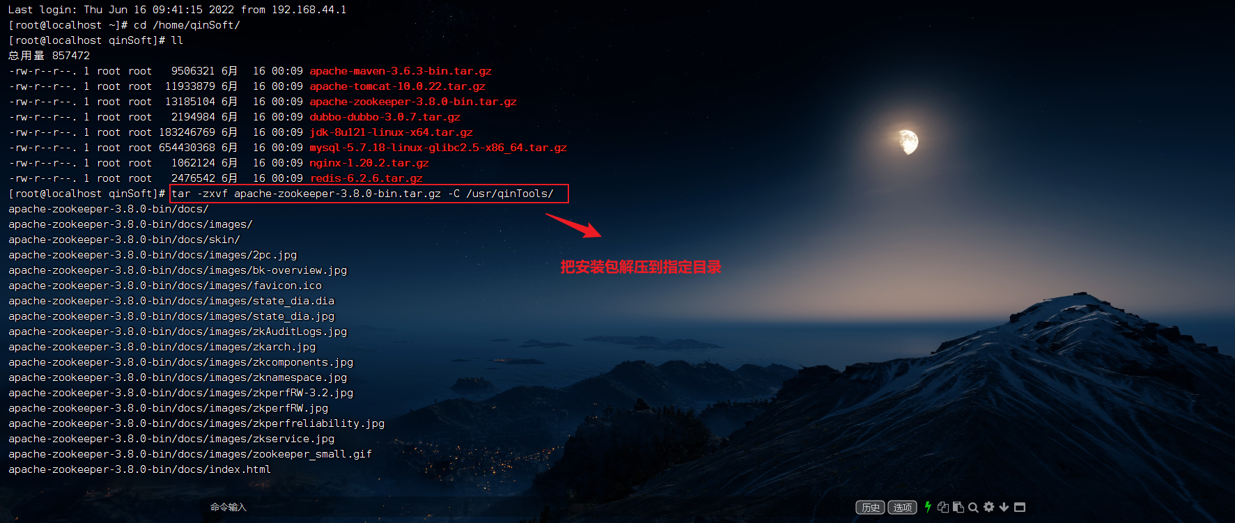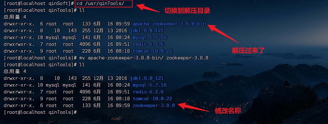 使用tar -zxvf apache-zookeeper-3.8.0-bin.tar.gz -C /usr/qinTools/