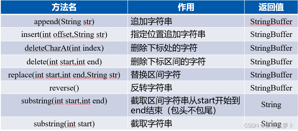 StringBuffer常用的方法