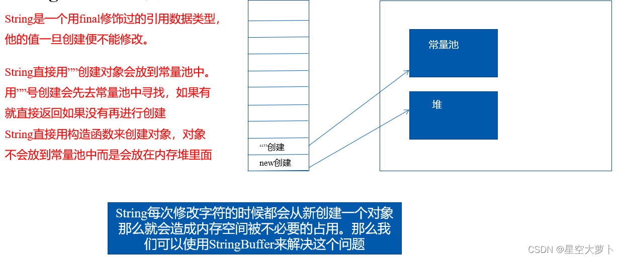 StringBuffer是用来解决String更改字符串造成的时间浪费和空间浪费的。