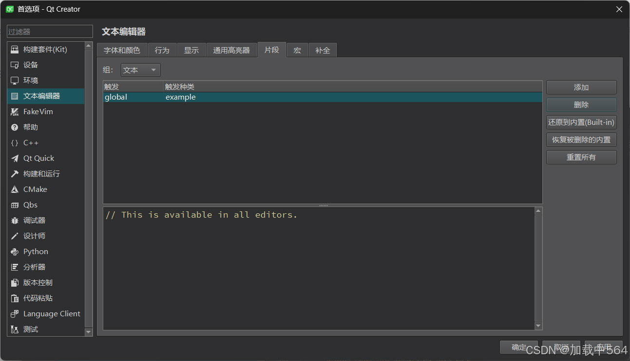 Qt Creator 提供了强大的代码片段功能,帮助开发者快速插入常用或复杂的代码结构。本文将介绍如何在 Qt Creator 中使用这一功能,并详细解释变量的用法。