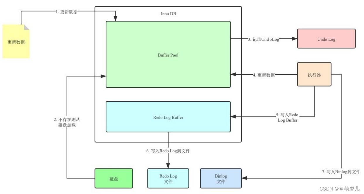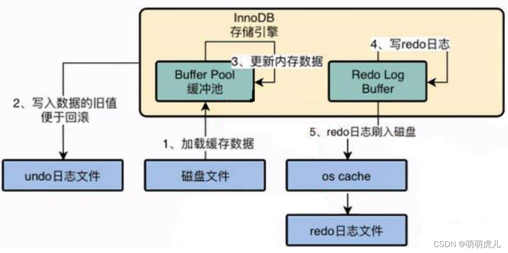 在更新Buffer Pool中的数据之前,我们需要先将该事务开始之前的状态写入undo log中。假设更新到一半出错了,我们就可以通过undo log回滚到事务开始前的状态。