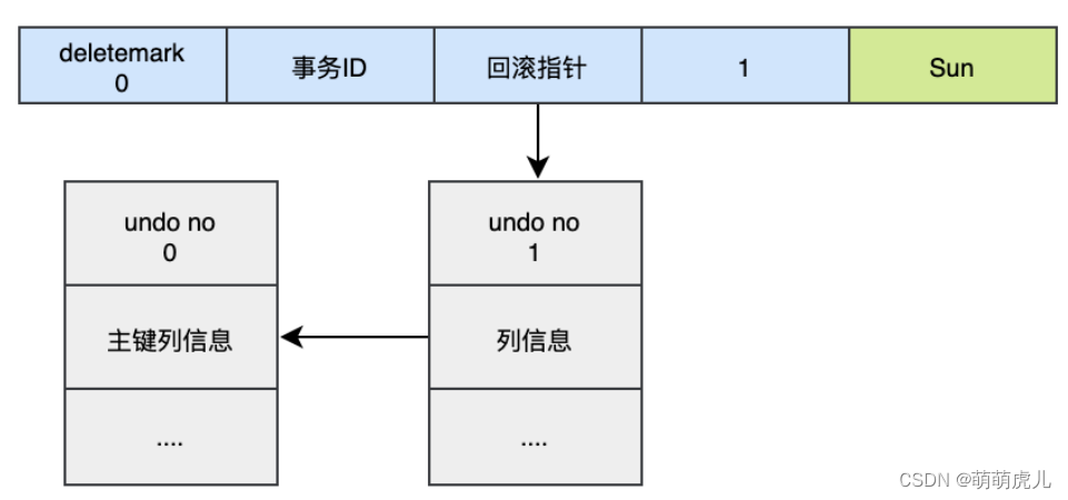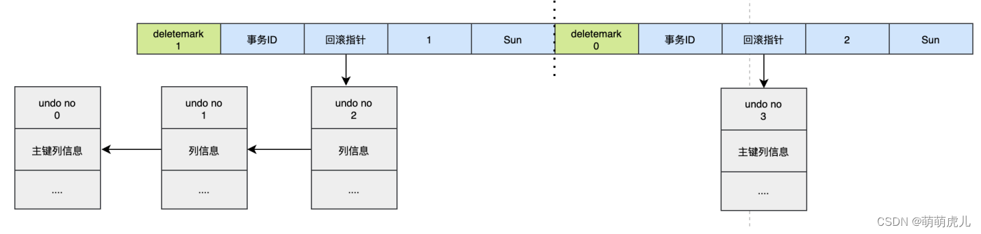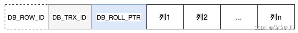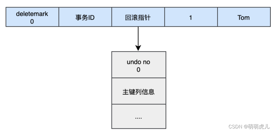 对于InnoDb引擎,每个行记录有这样两个隐藏列:事务ID、回滚指针(指向undo log)。