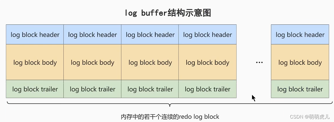 服务器启动时会申请一大片连续内存空间,就是redo日志的缓冲区,这片空间又被分成若干block,每个占用512字节的大小。