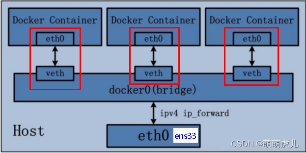3.3 docker0上面的每个veth匹配某个容器实例内部的eth0,两两配对,一一匹配。