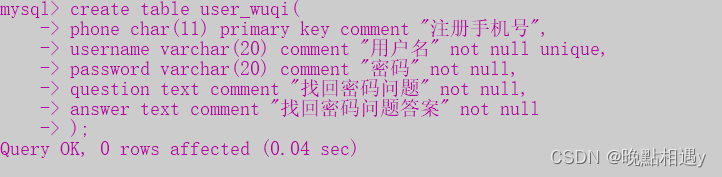 3、创建用户表“user_姓名全拼”,表中字段信息如下
