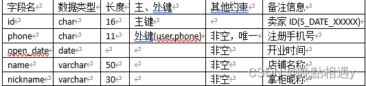 4、创建卖家信息表“seller_姓名全拼”,表中字段信息如下