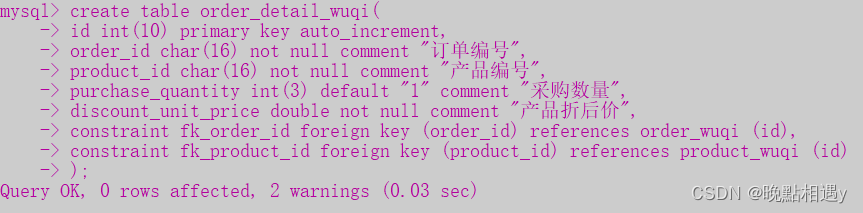 10、创建订单详情表“order_detail_姓名全拼”,表中字段信息如下