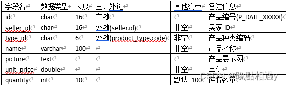 8、创建产品表“product_姓名全拼”,表中字段信息如下