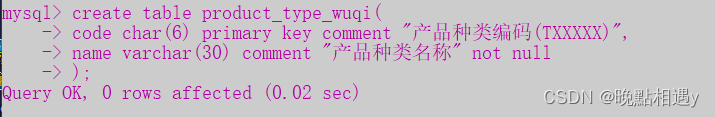 7、创建产品种类表“product_type_姓名全拼”,表中字段信息如下